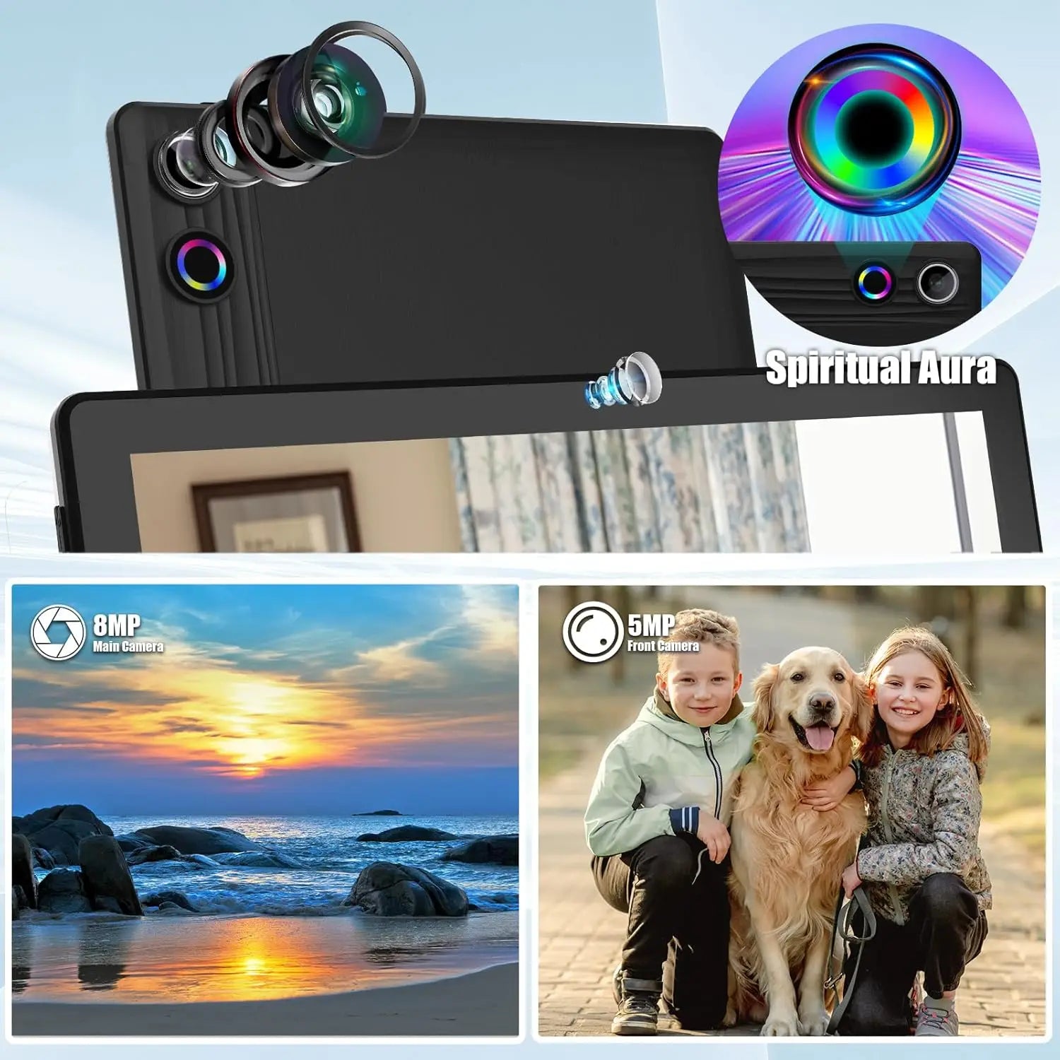 【11 inch large screen & Widevine L1 & Aura】:The Android tablet has a large 11-inch screen with a resolution of up to 1280*800p, which provides detailed picture quality and realistic colors. Thanks to Widevine L1 certification, it supports smooth HD video playback, so you can enjoy a high-quality audiovisual experience anytime, anywhere.