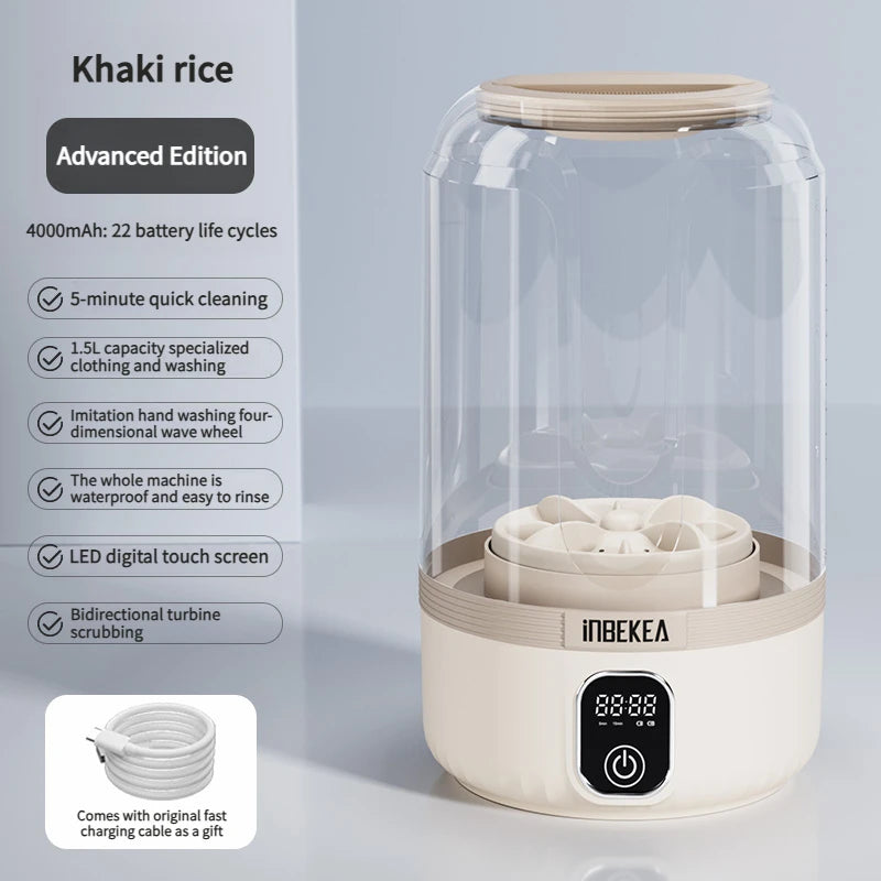 2025 wireless mini digital washing machine, rechargeable portable intelligent small underwear and sock specific washing cup 1.5L.