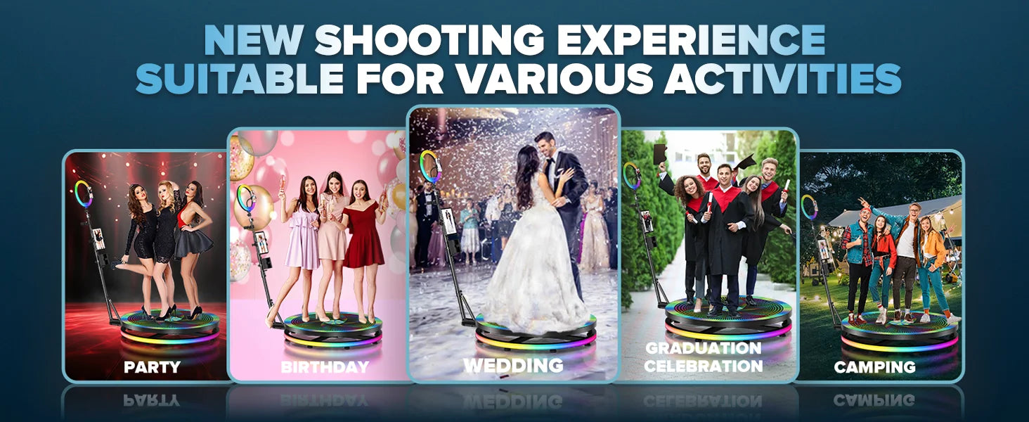 360 Photo Booth for Video with App Control Rotating 360photo Booth Degree Photobooth Machine with RGB Ring Light for Party Event