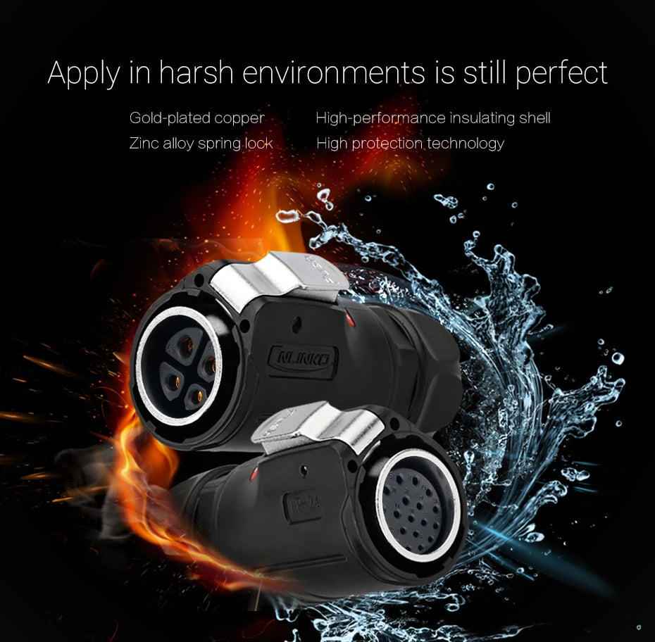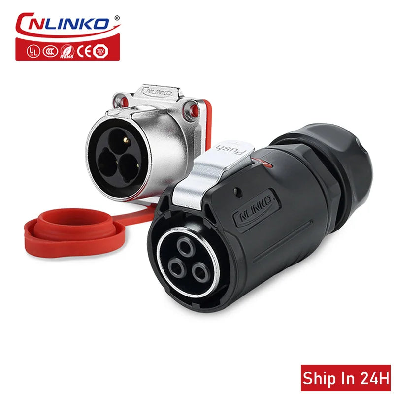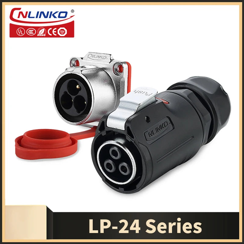 Cnlinko LP24 Plastic IP67 Waterproof 3pin Aviation Electric Plug Socket AC500V 25A Power Connector for Circular Wire Connection