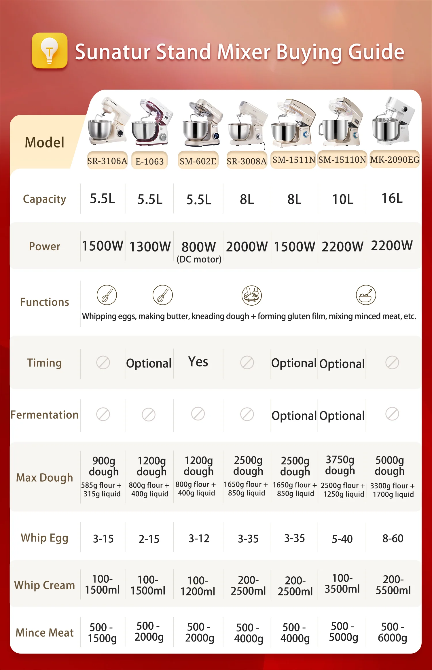 Mixing Bowl Capacity: 5.5L