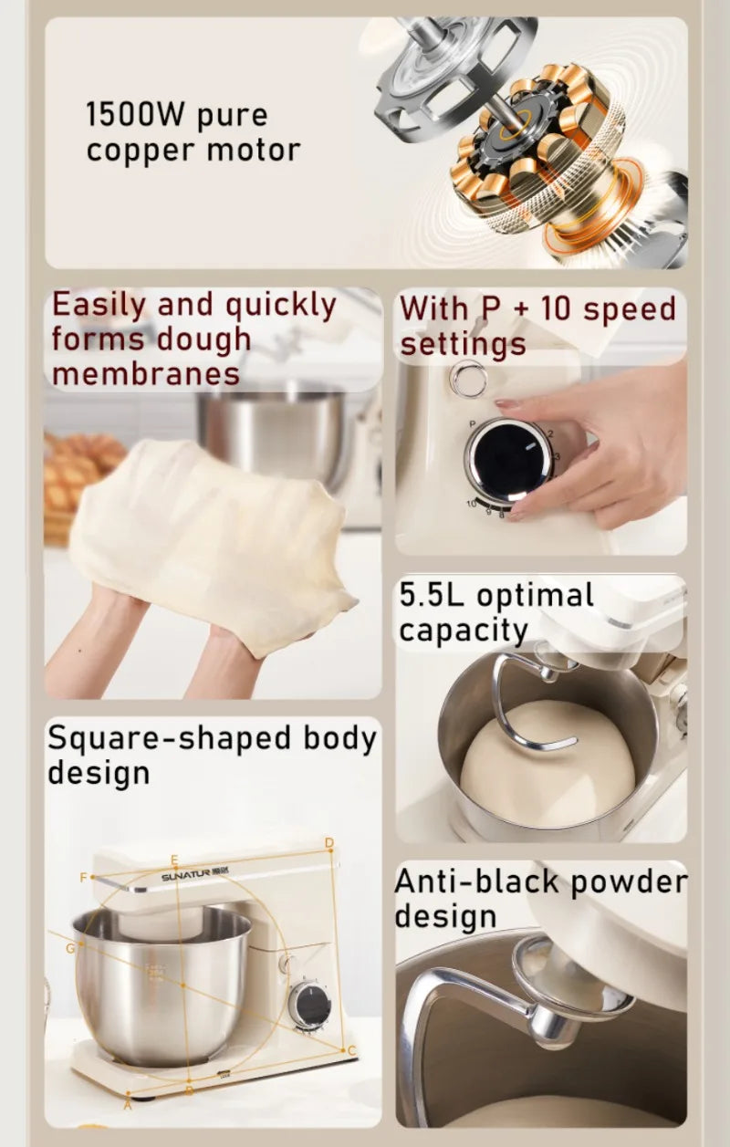 SUNATUR 5.5L New Planetary Stand Mixer Chef Machine Household Automatic Dough Kneading Home Appliance Professional 220V