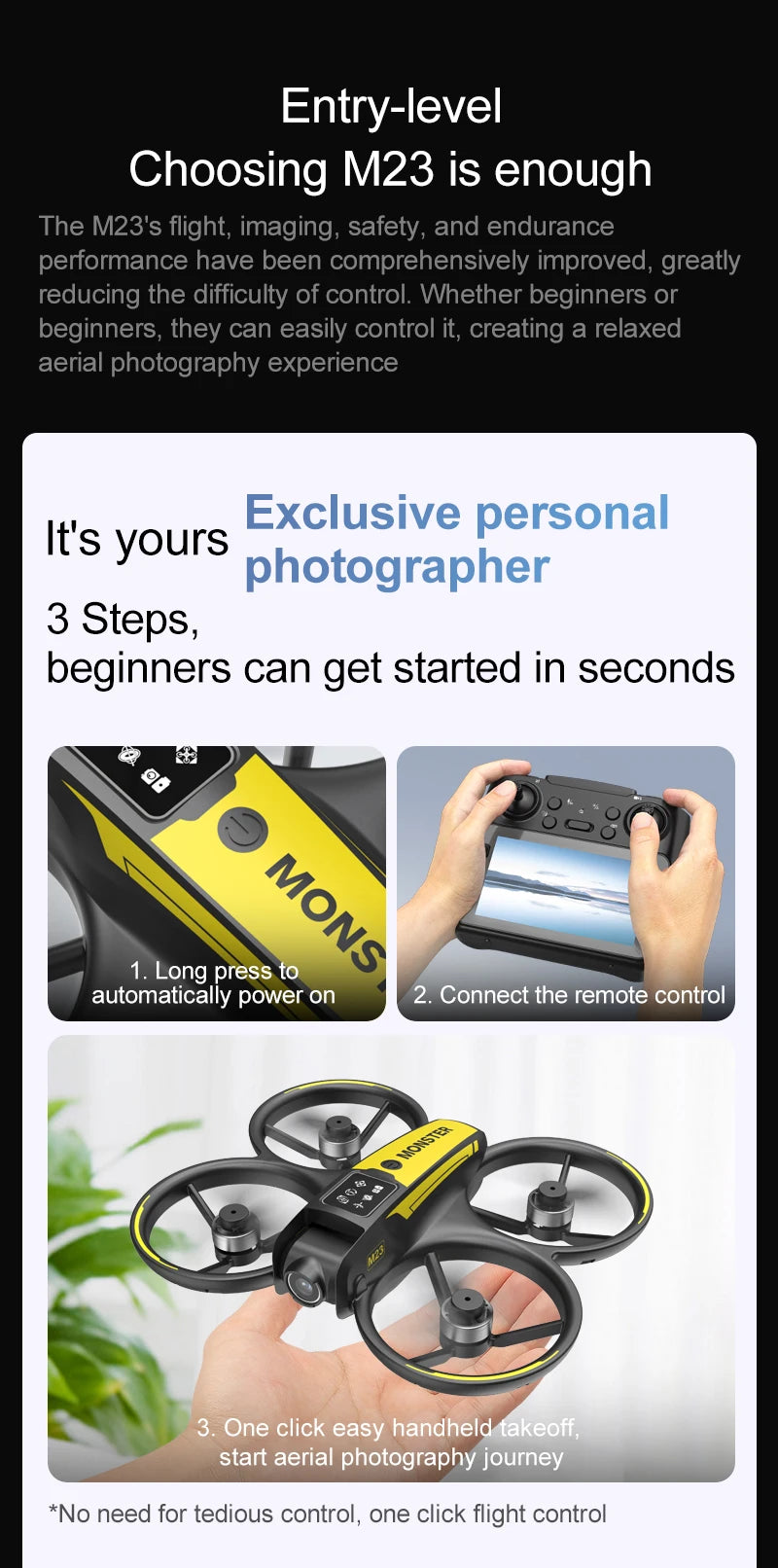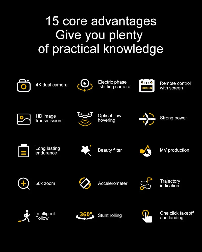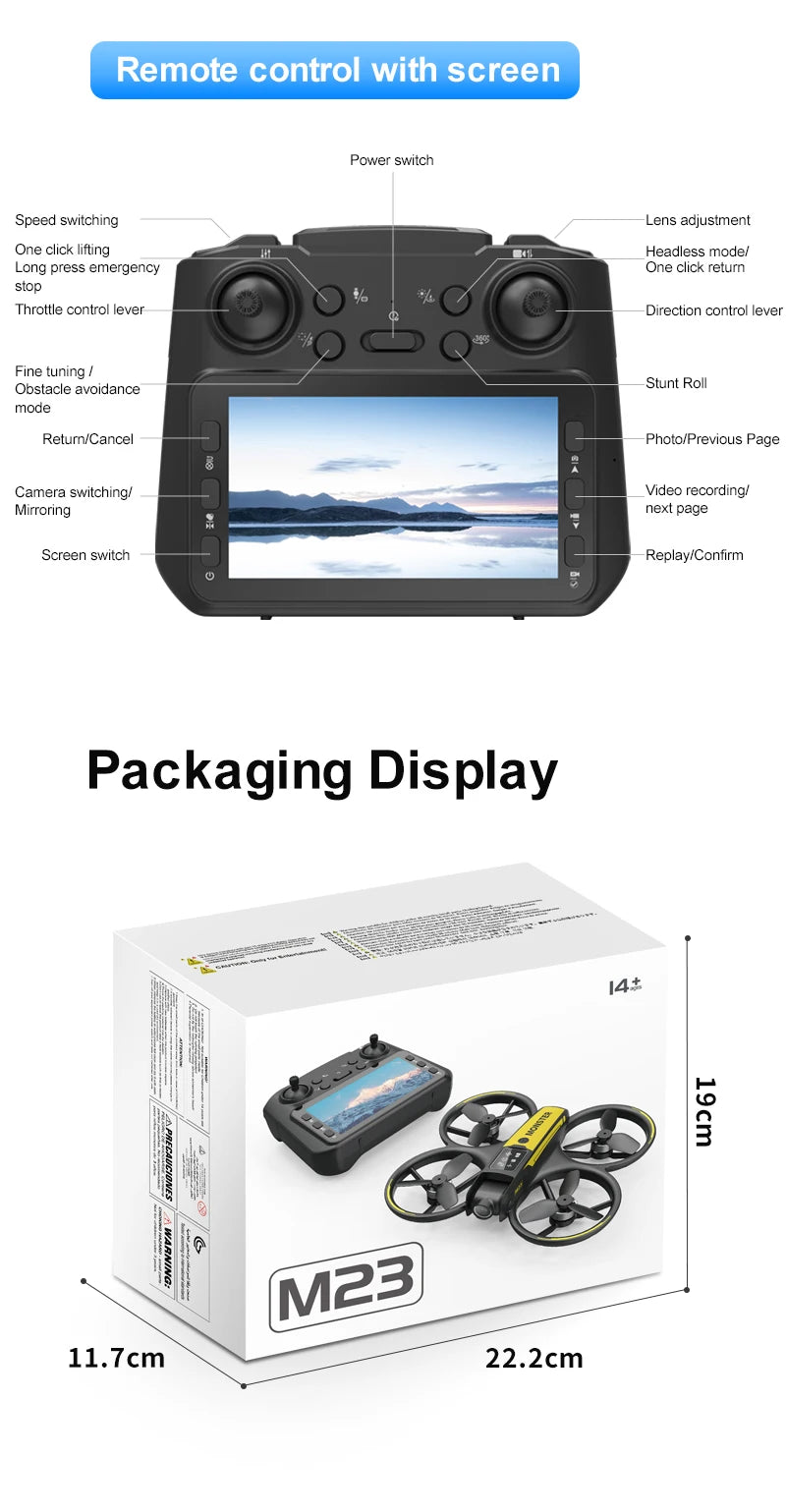 The new drone features a 4.5-inch display screen, one-click rolling, and dual-camera optical flow intelligent positioning