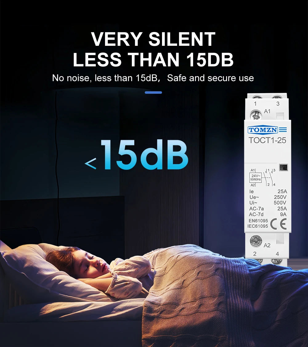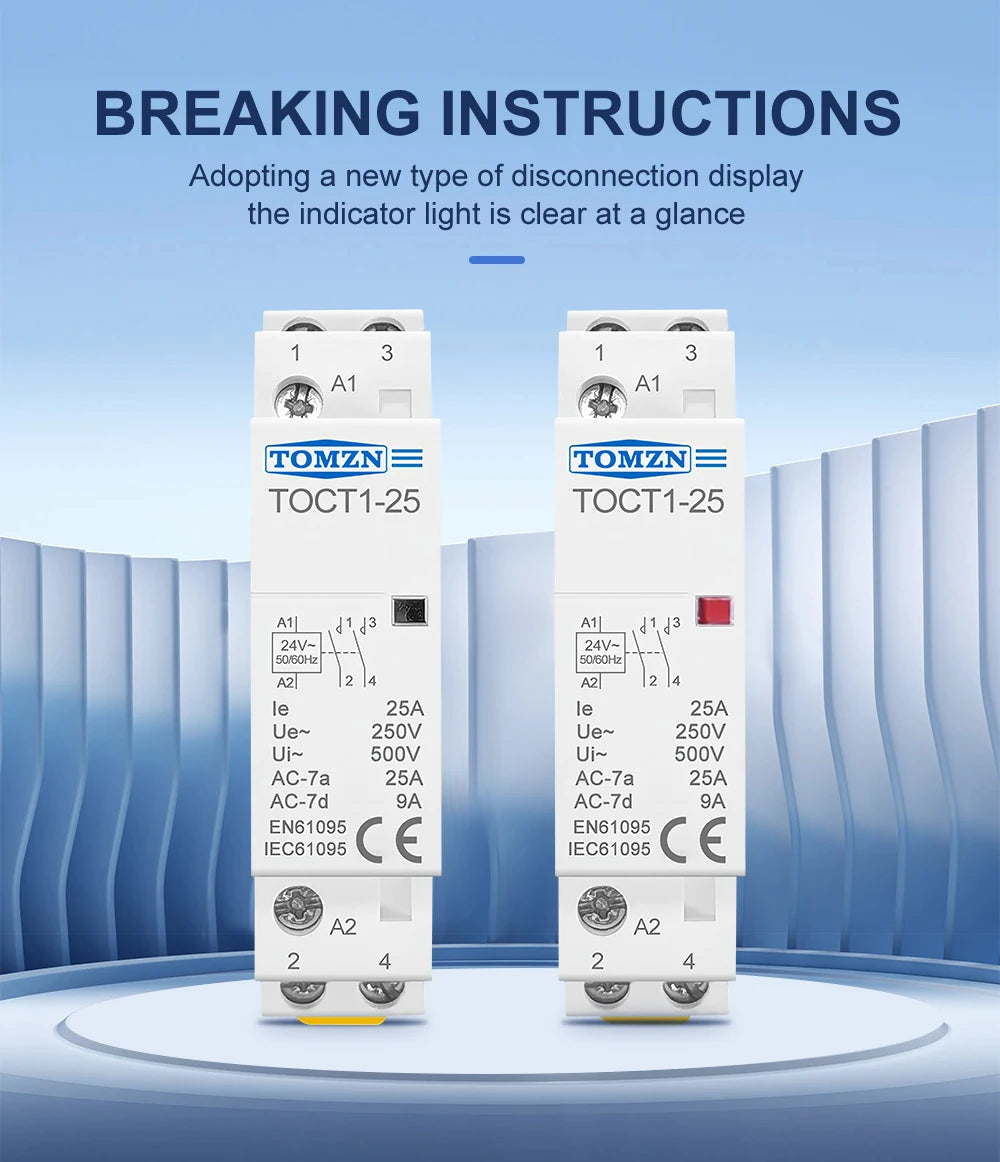 TOCT1 2P 25A 24VAC 50/60Hz Din Rail Household AC Modular Contactor 2NO or 1NO 1NC