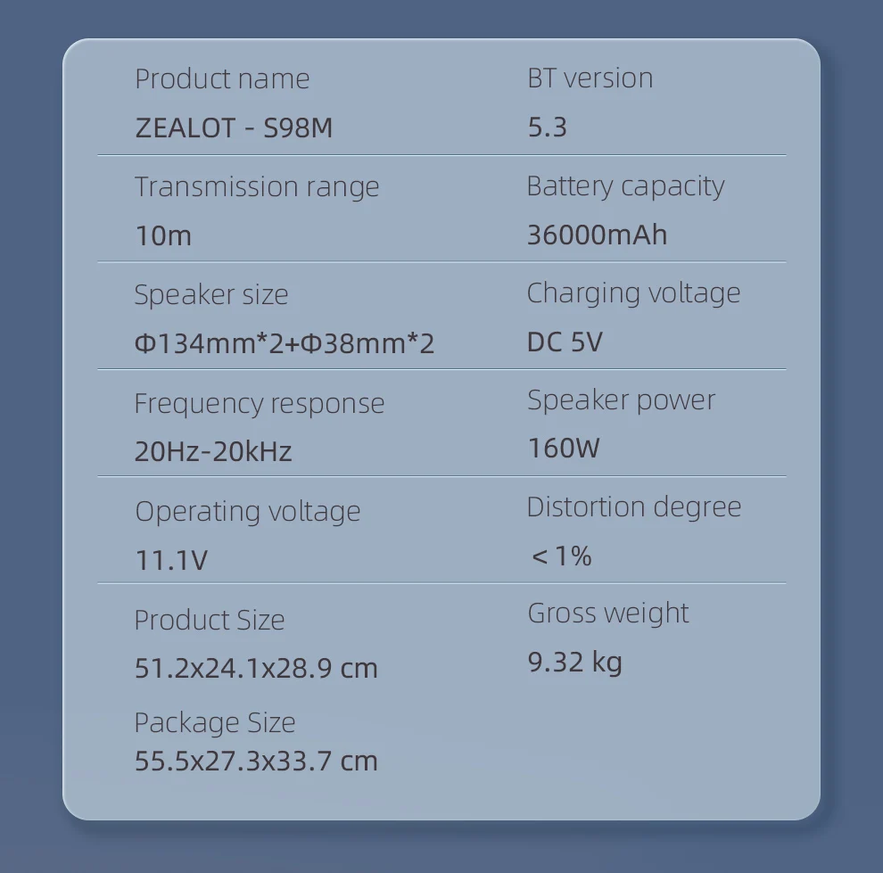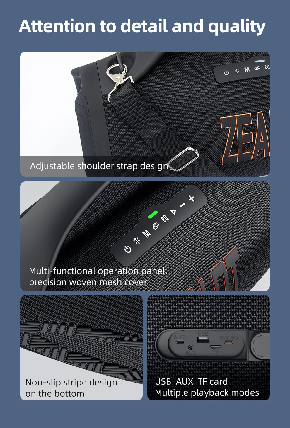 AUX/TWS/USB/TF Card/RGB Lights/Power Bank |