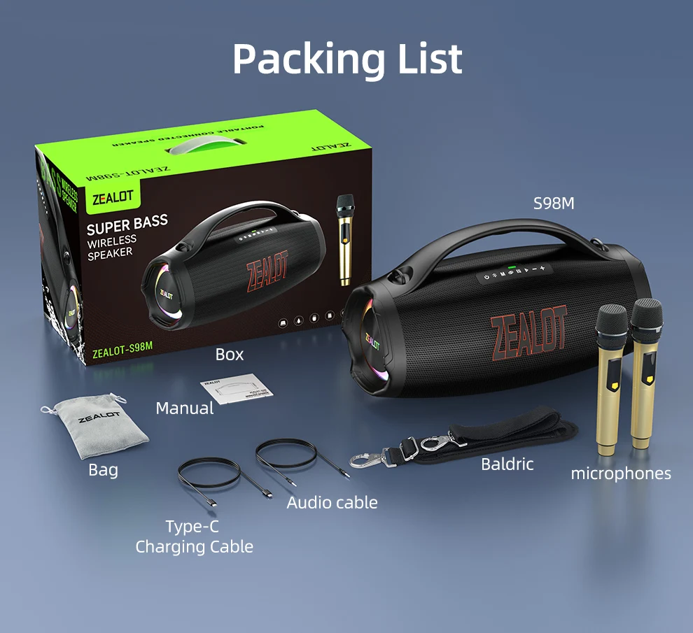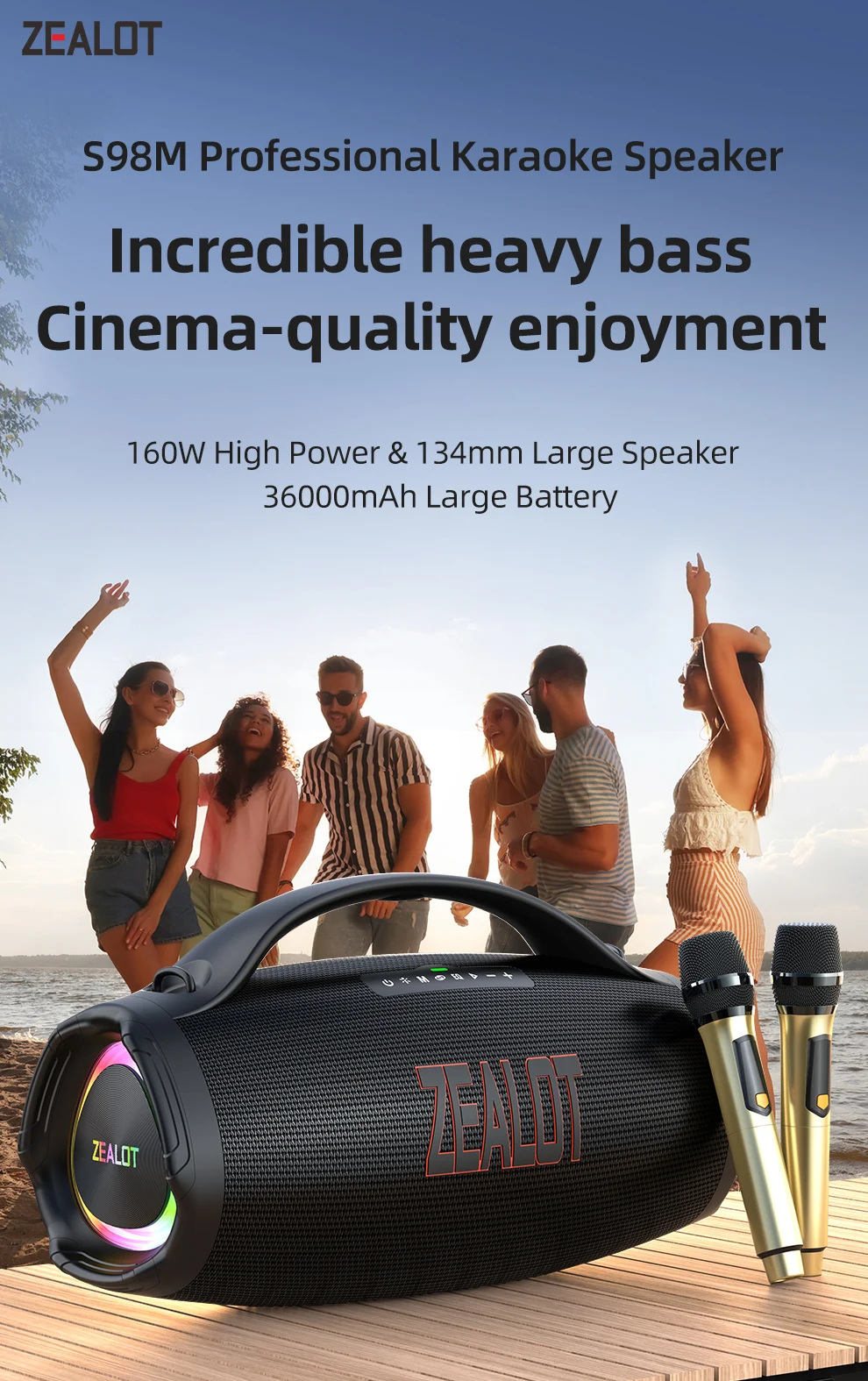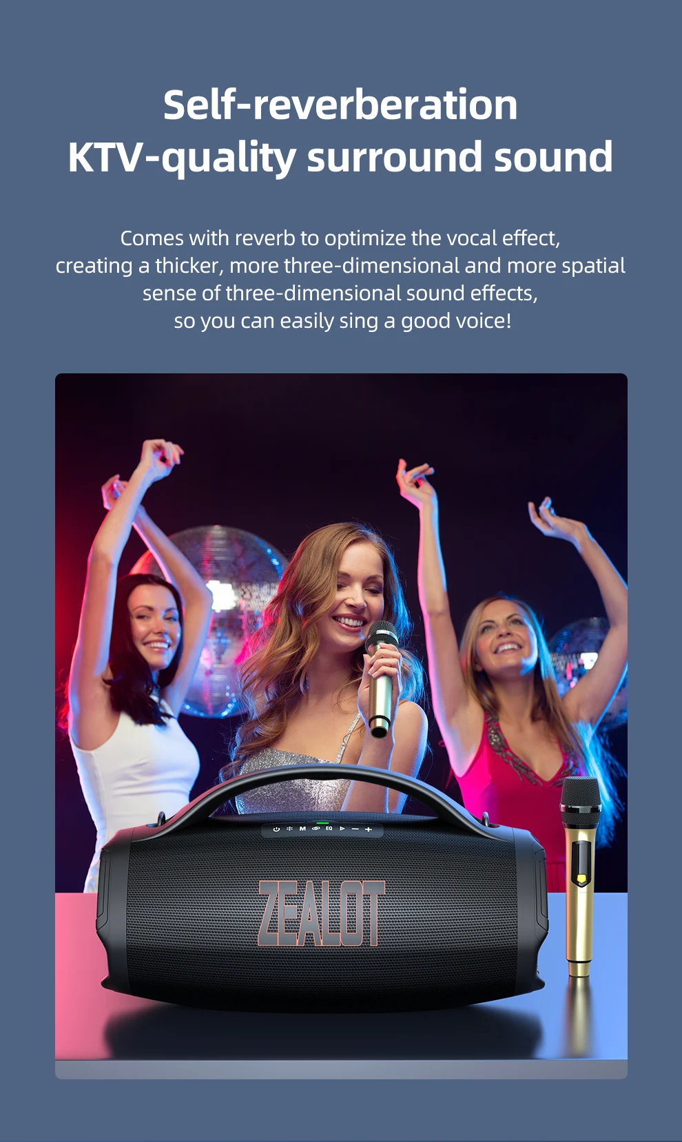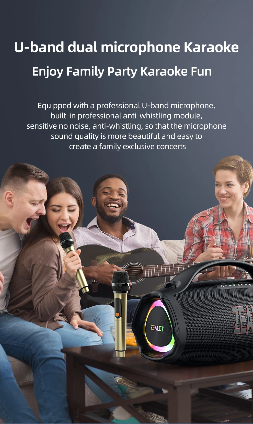 ZEALOT S98M Portable Speaker with 2 Wireless Microphones with Lights, Karaoke Microphone Supports USB/TF/AUX for Home Party