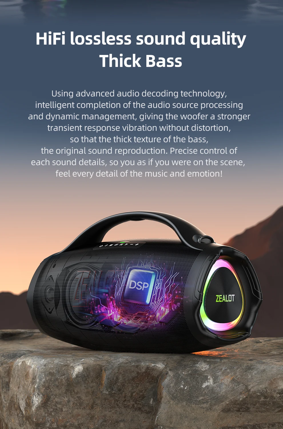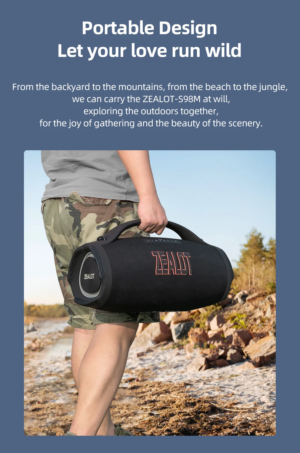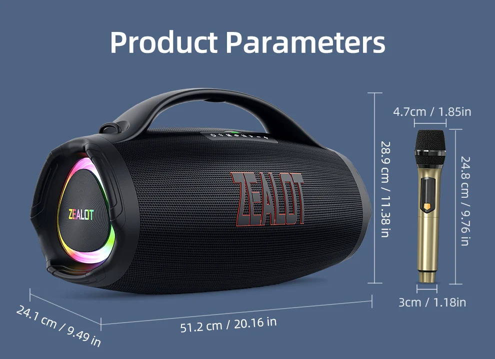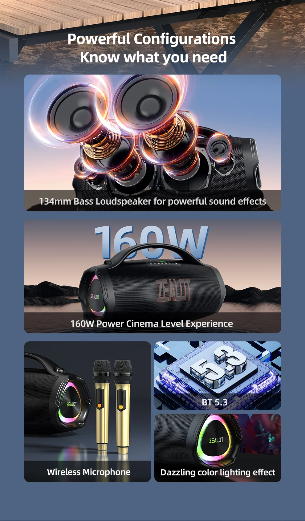 ZEALOT S98M Portable Speaker with 2 Wireless Microphones with Lights, Karaoke Microphone Supports USB/TF/AUX for Home Party